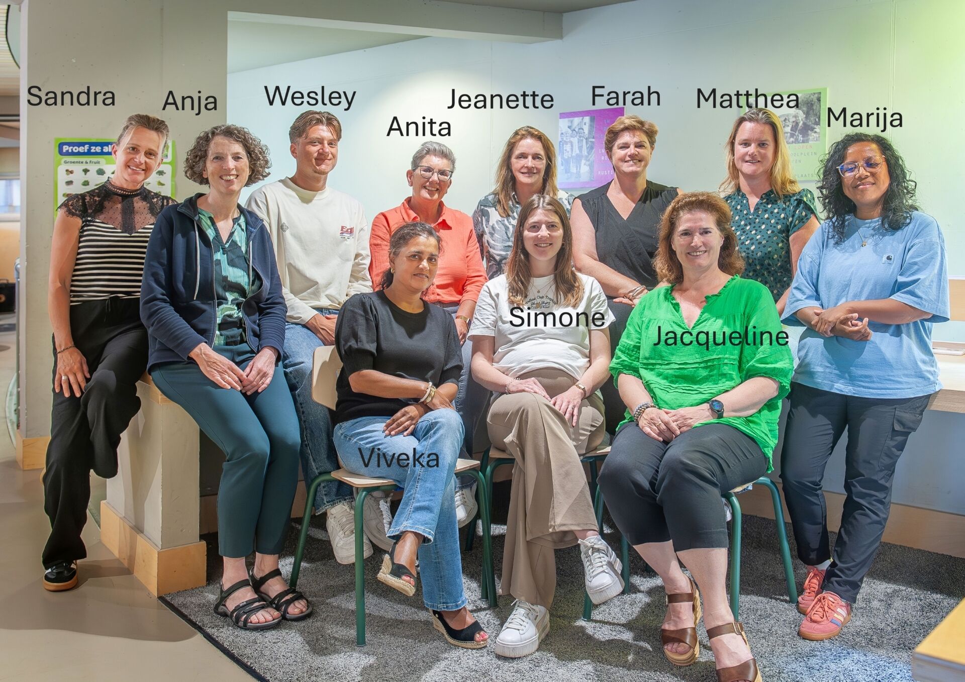 Simone Kant is leerkracht in de bovenbouw maar tot de kerstvakantie afwezig in verband met zwangerschapsverlof. Anja de Dreu is ook intern begeleider, Matthea Brinksma is hoogbegaafdheidscoach en Agnes Goudzwaard is administratief medewerker. Jeanette van Loo is directeur, ook van de Ichtusschool. Met de Ichtusschool werken wij als team nauw samen.